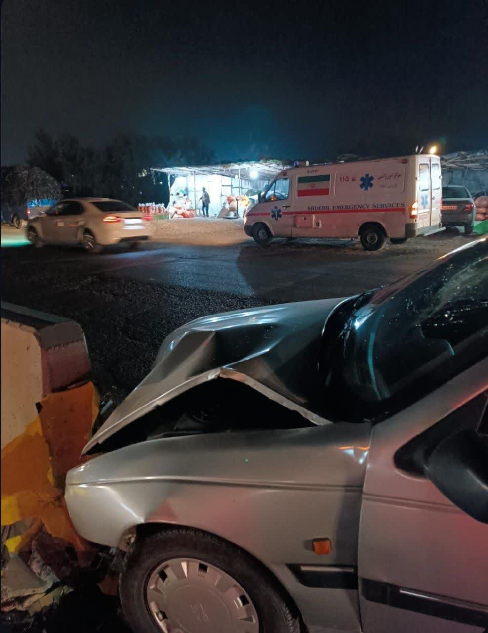 به گزارش خبرنگار فریاد ارس، در حادثهای که شامگاه روز جمعه 7 آذرماه در ورودی شهر پارسآباد و در مقابل مسکن مهر رخ داد، یک دستگاه خودرو پژو ۴۰۵ بهشدت با موانع بتنی (نیوجرسی) وسط خیابان برخورد کرد.