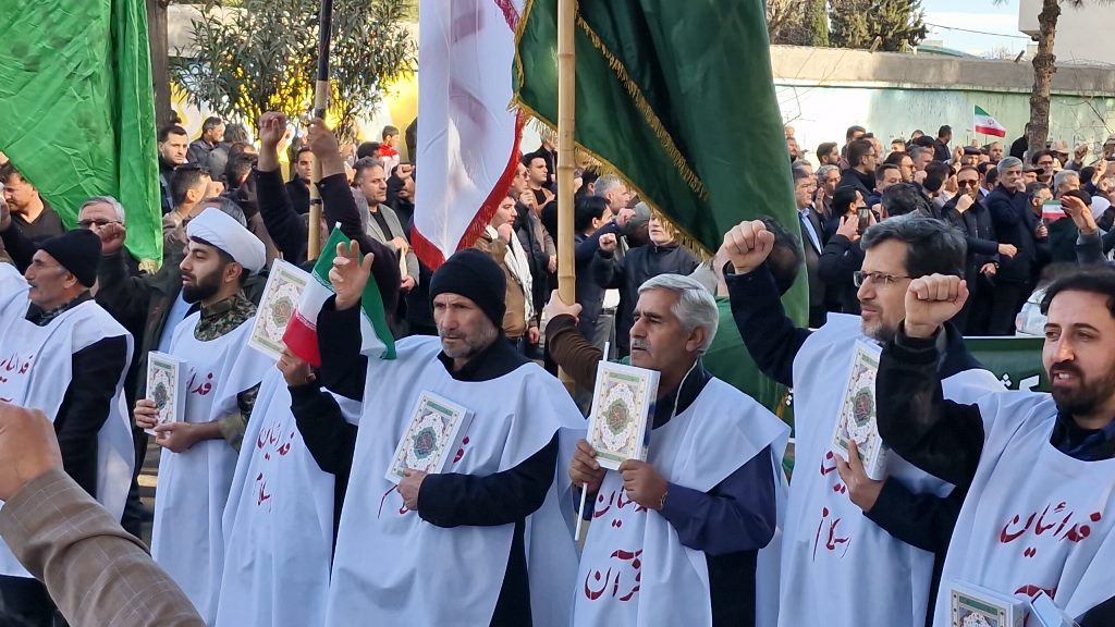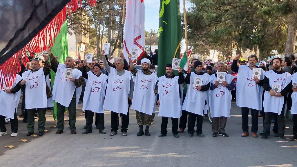 پارس آبادی ها امروز با پوشیدن کفن هایی با نوشته فداییان اسلام و قرآن، و در دست داشتن قرآن کریم و پرچم به دست با شعارهای خود از انقلاب اسلامی دفاع و از دشمن برائت کردند.